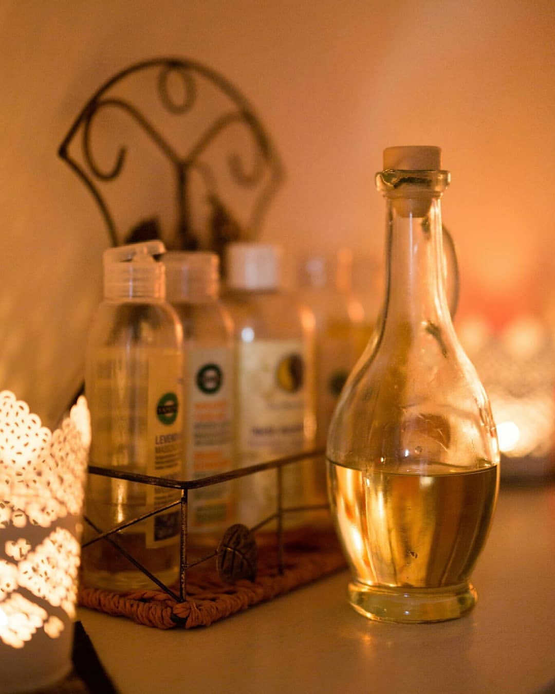 Optional aromatherapy creams and oils for relaxing and refreshing massages e.g.: